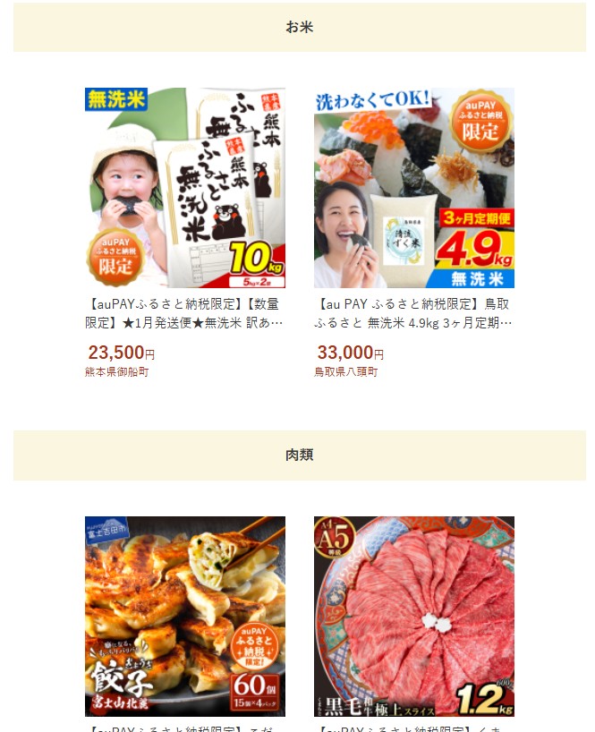 コスパの良いお米などのauPayふるさと納税限定の返礼品がある
