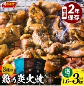 【加工品(からあげ・炭火焼きなど)の1万円あたりの量1位】宮崎県宮崎市の3種の鶏の炭火焼セット 2.4kg