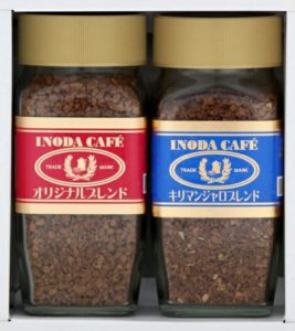 京都で有名なイノダコーヒーのインスタントコーヒーオリジナルブレンドとキリマンジャロブレンドが各80gずつ瓶詰めで届きます。