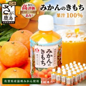みかんジュースの1万円あたりの量1位は、佐賀県鹿島市の「みかんのきもち ペットボトル 280ml×24本」です。