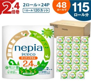 【キッチンペーパー(ペーパータオル)の還元率1位】北海道苫小牧市のネピeco キッチンタオル 2.4倍巻 計48ロール