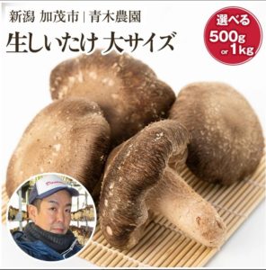 しいたけの還元率1位は新潟県加茂市の「生しいたけ大サイズ500g」です。