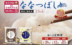 定期便の還元率1位は、北海道東川町の『特A ブランド米 東川米「ななつぼし」』です。