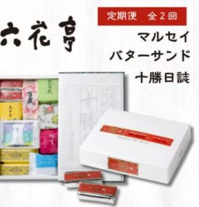 1回目は、六花亭の人気商品の詰め合わせの「六花亭・十勝日誌 26個入」、2回目は、六花亭の大人気商品「六花亭 ・ マルセイバターサンド 20個入」がとどくセットです。
