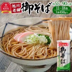 旭川市の老舗製麺所「藤原製麺」の乾燥そばが、一袋に5束450g18袋(約90人前)もらえます。