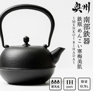 【南部鉄器の鉄瓶の還元率1位】岩手県奥州市の南部鉄器 鉄瓶 めんこい寒梅美肌鉄瓶~MENKOI BIHADA~ 0.9L