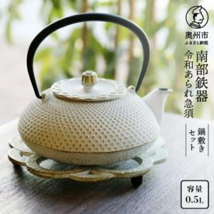南部鉄器の急須の還元率1位は、岩手県奥州市の「南部鉄器 令和あられ急須 0.5L 鍋敷きセット【及富作】」です。