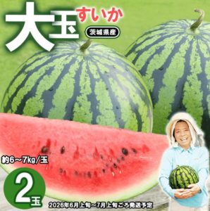 | すいかのコスパ1位 | 茨城県産大玉すいか2玉セット(約6~7kg/玉) | 1万円で9.23kg |